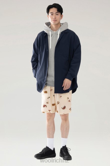 This garment is a conscious and stylish choice from the Outdoor Label Designed in Japan collection. It is crafted in recycled polyester yarns and was created using BRING Technology , a recycling technology for polyethylene terephthalate (PET) plastics, which enables horizontal recycling of garments into new clothes. It has a water-repellent finish and its stretch property makes it less likely to stick to the skin. Design wise it has a minimal, clean aesthetic with a loose-boxy fit, a pointed collar, button-down closure, vertical zip chest pocket, two side-angled zip pockets and a rounded hem on the front and back.