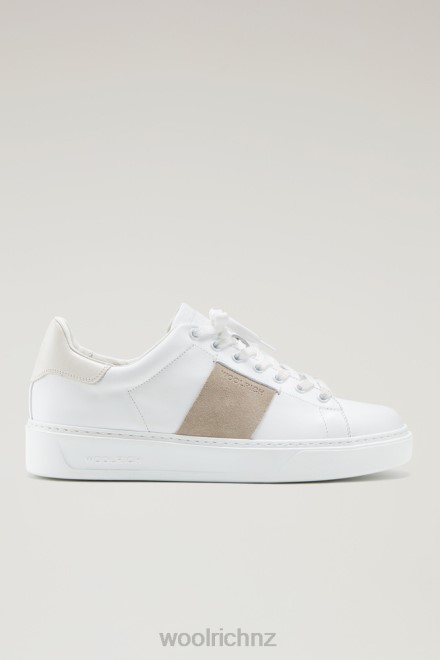 Woolrich Clothing – Woolrich Classic Court Sneakers in Soft Leather with Contrast Suede Side Band White Cream Men DL82785 Footwear