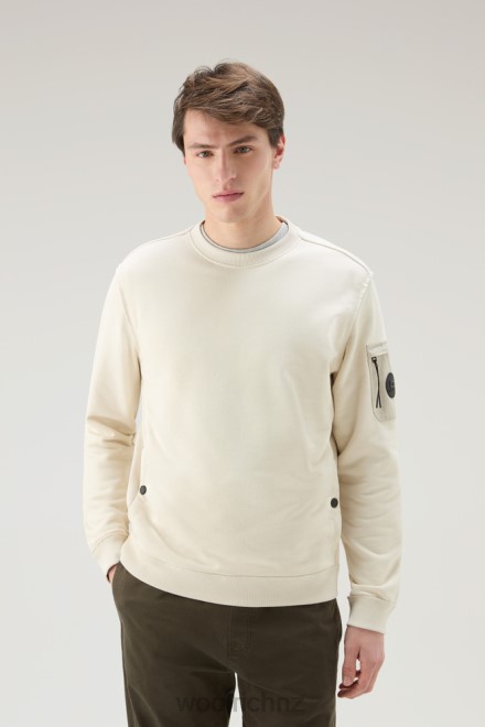A classic silhouette is elevated with a fresh and urban twist. Meet our crewneck in washed pure cotton blend. Long sleeves and ribbed cuffs, collar, and hem showcase a classic style with a perfect fit. The hidden button welt pockets and zipped Taslan nylon pocket on the sleeve offer extra storage for items when you want a hands-free approach.