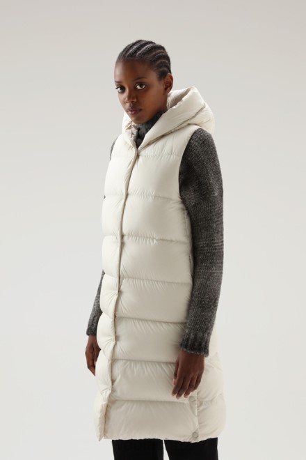 The ultimate layering staple for the transitional months. The women’s Ellis Vest is perfect over jeans and knits, or underneath your favorite coat. Crafted from water-repellent and wind-resistant microfiber, it’s filled with insulating duck down and styled with horizontal quilting for excellent warmth. Topped with a snap button fastening and inseam pockets for a sleek, streamlined silhouette.