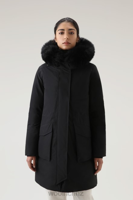 The ultimate in cold-weather comfort, the women’s Military Parka stands out with its enduring appeal and modern versatility. The clever construction combines an external layer-crafted from our signature water-repellent Urban Touch Fabric-with a fox fur liner. The inner waist-defining drawstring ensures a flattering fit, while the gently rounded hem, concealed front fastening, and roomy pockets are both practical and stylish. The pockets are also treated with Polygiene ViralOff technology inside the pockets, killing over 99% of bacteria in a two-hour time span.