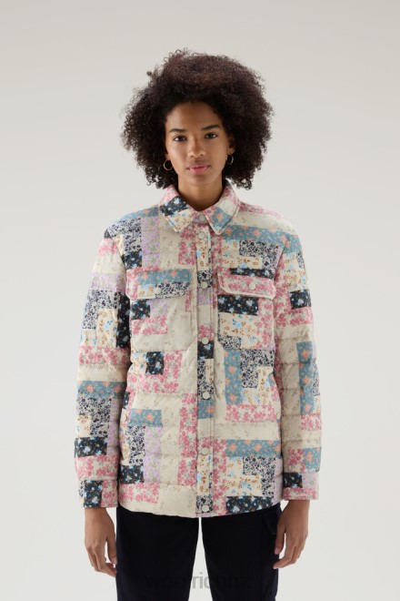 An ode to the blooming season and Pennsylvania’s mountain laurel flower draws attention to our quilted Overshirt. This garment, inspired by Americana and featuring a patchwork pattern, is a true statement piece for any wardrobe. It’s made of water-repellent light cotton, lined with recycled ripstop, and insulated with duck down for warmth. It features a shirt collar and snap button-down closure, as well as flap pockets on the chest and side entry welt pockets on the bottom. It has a slightly rounded hem and split cuffs. The lining inside the pockets is treated with special Polygiene ViralOff technology, designed to kill over 99% of viruses in a two-hour time span.