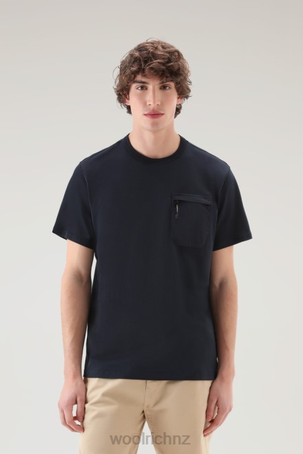 Woolrich Clothing – Woolrich T-shirt in Pure Organic Cotton with Taslan Nylon Zip Pocket Melton Blue Men DL82632 Clothing