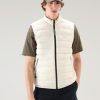 A refined and functional garment, the iconic Aleutian vest is a statement piece to protect you during those in-between months. Inspired by the Woolrich archives, this versatile item is made in water-repellent pure cotton with a printed check pattern. It features horizontal quilting and recycled down duck quilting for extra warmth in colder climates. It has a diagonal zip pocket, two patch pockets, and an internal pocket to keep your items in. It is equipped with a special pocket lining treated with Polygiene ViralOff technology that will have over 99% reduction of microbes in a two-hour time span.
