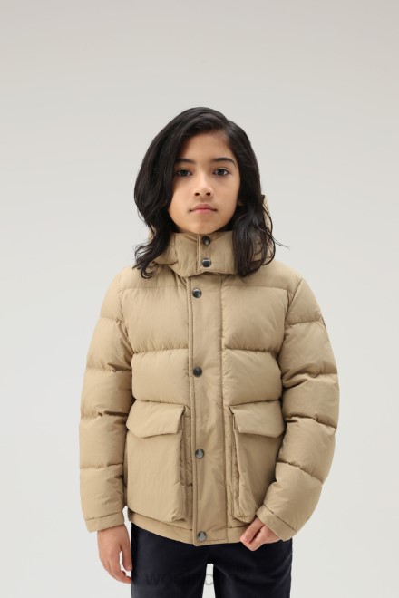 Woolrich NZ – Woolrich B Quilted Taslan nylon Down Jacket with Detachable Hood Gold Khaki Boys DL82928 Clothing