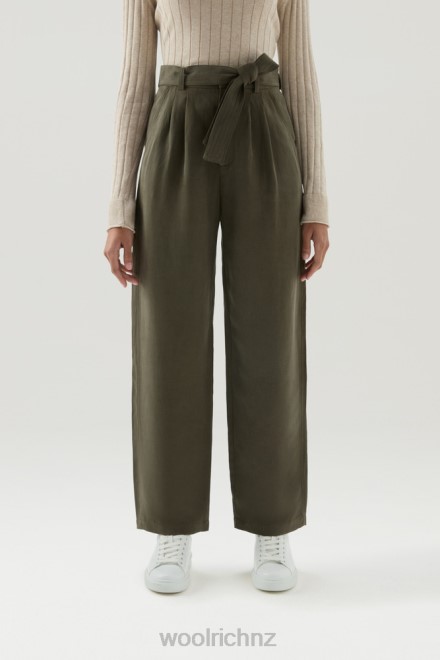 A sleek but casual silhouetted, these pants are easy to dress up or down. They’re crafted in a lightweight viscose blend and feature a feminine belted waist. They have also side pockets, one rear pocket and doube stitch details on the side seams.