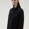 Woolrich NZ – Woolrich Brushed Blended Wool Overshirt with Fringe Blue Buffalo Women DL82253 Clothing