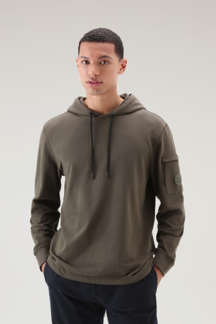 Woolrich NZ – Woolrich Hoodie in Pure Cotton Fleece with Zip Pocket Dark Green Men DL82421 Clothing