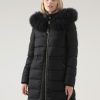 Cozy and protective: the women’s Keystone Parka is a must-have addition to your winter edit. Made from Woolrich’s signature water-repellent Urban Touch fabric and filled with duck down padding, its relaxed silhouette is characterized by a lower back hem for a little extra coverage. However, what sets this style apart from the rest is its detachable cashmere goat fur trim, adding a touch of elegance and versatility. Treated with Polygiene ViralOff technology inside the pockets to kill over 99% of viruses in a two-hour time span.