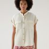 Our shirt is a wardrobe staple for dressier or casual events. It is crafted in a viscose linen blend with a stand-up band collar, dropped shoulders, two flap pockets on the chest, and a pleat on the upper back.