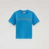 Inspired by the great outdoors on an American road trip, this short-sleeved tee is for boys is a cool staple garment. It is made in pure organic cotton jersey and has a ribbed crewneck and a graphic printed Camping logo on the chest.