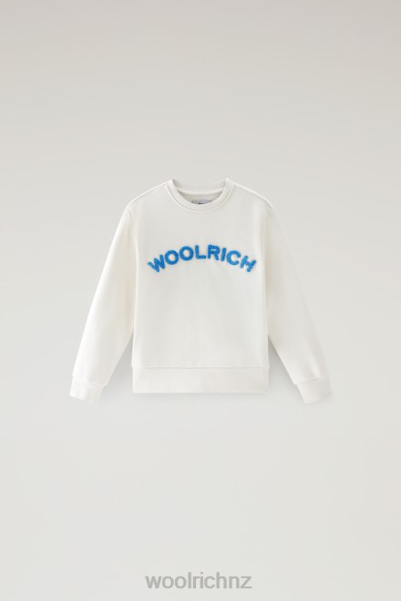 Woolrich Parka – Woolrich B Varsity Crewneck in Pure Cotton Milky Cream Boys DL82891 Clothing