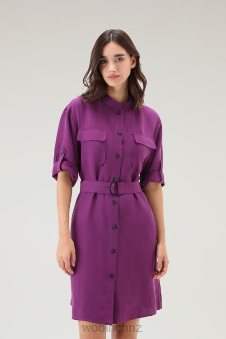Meet our shirt dress made in a fluid viscose blend giving it extra movement and a lightweight feel. It features a band collar, button-down closure, roll-up sleeve with cuff adjustments, and a stitched belt on the waist for the perfect fit. It also has two applied chest pockets and side-angled pockets for a hands-free appeal.