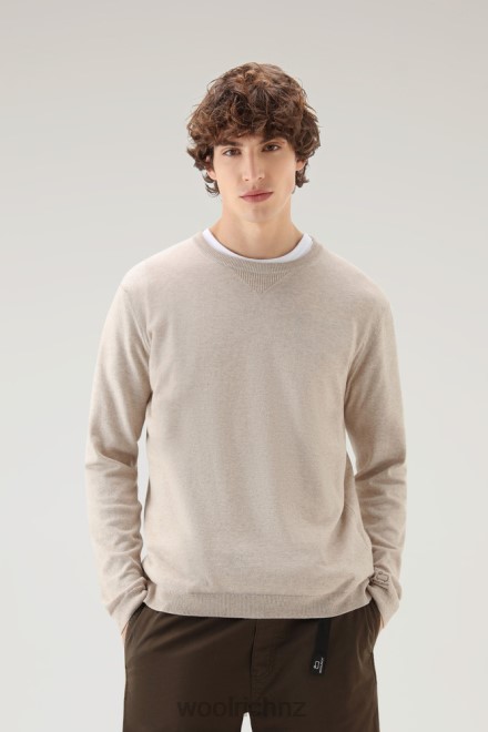 Woolrich Parka – Woolrich Crewneck Sweater in Pure Cotton Beige Melange Men DL82375 Clothing
