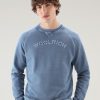 Woolrich Parka – Woolrich Varsity Crewneck in Garment-Dyed Pure Cotton Fleece Harbor Green Men DL82489 Clothing